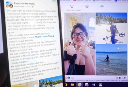 Du khách Úc cảm ơn “người hùng” Đà Nẵng giúp tìm nhẫn kim cương trị giá 53 triệu đồng bị rơi ở bãi biển Cửa Đại. Anh Phan Thanh Trinh dùng thiết bị chuyên dụng hỗ trợ miễn phí.